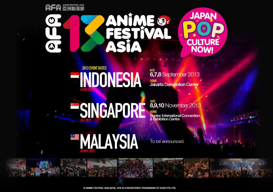 Kabar mengenai kembali diadakannya Anime Festival Asia 2013 terjawab sudah. Melalui website resmi sudah tercantum bahwa salah satu event besar ini akan diadakan pada tanggal 6, 7, dan 8 September 2013 di Jakarta Convention Center.