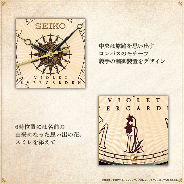 SEIKO, sebuah produsen jam tangan asal Jepang dan saat ini, salah satu anime yaitu “Violet Evergarden” berkolaborasi dengan brand tersebut untuk merilis jam eklusif Violet Evergarden edisi terbatas. “Violet Evergarden Seiko Memorial Watch“, dirilis kedalam 2 model yaitu versi stainless steel dan kulit.