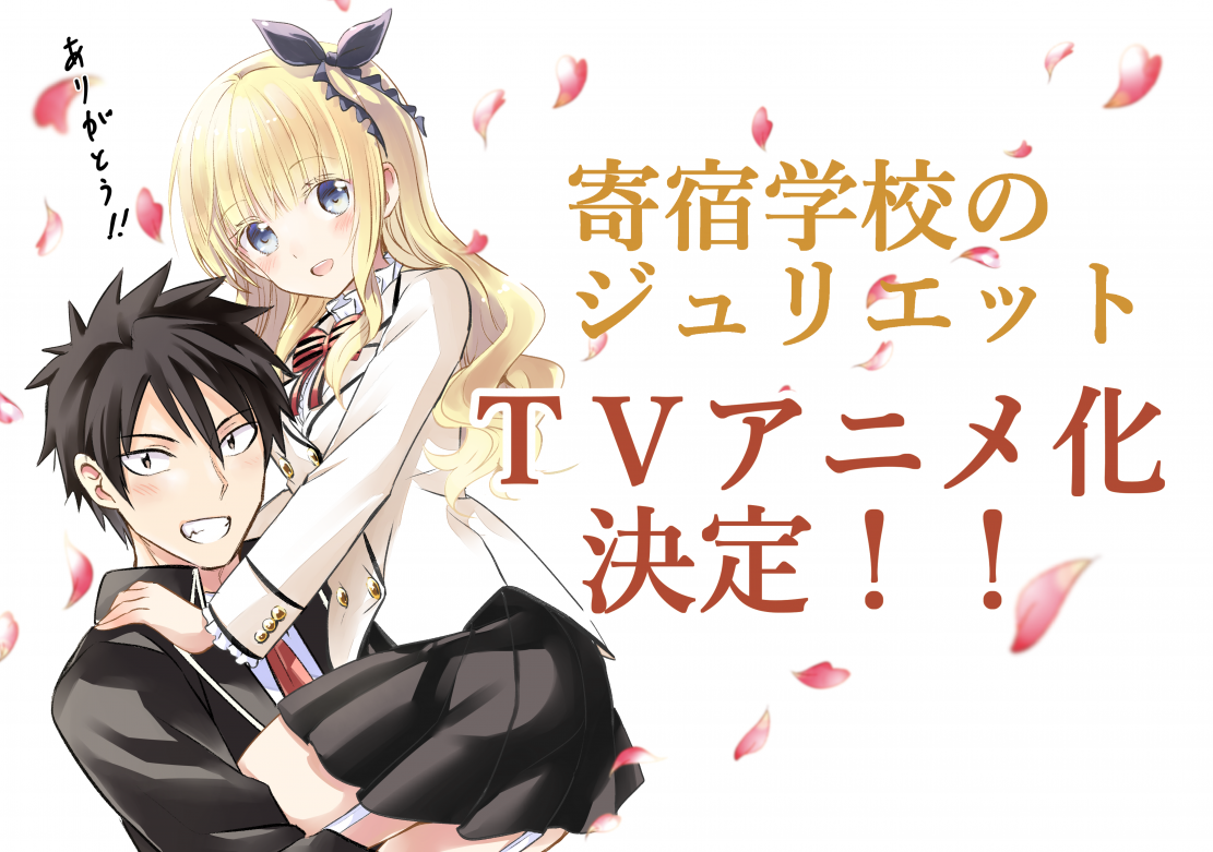 Hari ini (14/3) melalui website resminya, komik Kishuku Gakkou no Juliet mengumumkan bahwa komik tersebut akan mendapatkan adaptasi anime dan mengungkap seiyuu dari karakter utama komik ini berserta visual nya: